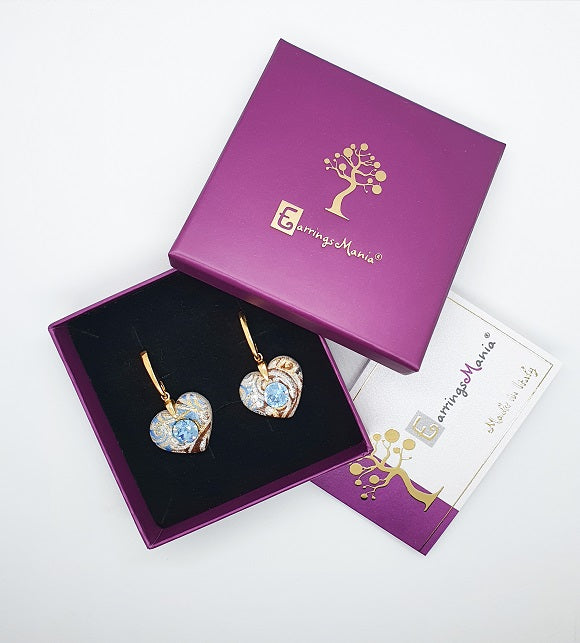 Precious Heart Aquamarine - Orecchini con pendente a cuore, montatura in argento placcato oro 24 kt